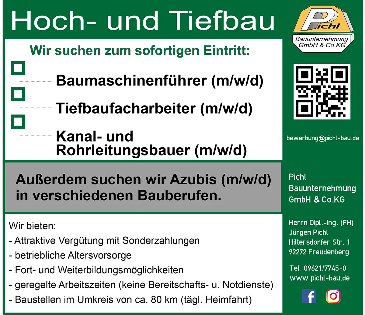 Arbeiten bei der Pichl Bauunternehmung GmbH & Co. KG heißt auch verschiedene Vorzüge zu bekommen