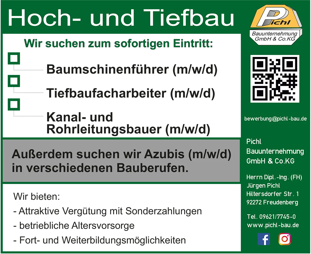 Die Firma Pichl wurde 1975 durch die Gründung eines Tiefbauunternehmens weiter ausgebaut. Nach Wegfall der innerdeutschen Grenzen wurde das Tätigkeitsgebiet durch Gründung einer weiteren Baufirma auf die ostdeutschen Bundesländer ausgedehnt.